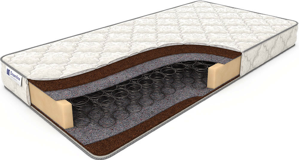 Здоровый отдых на кокосе. Кокосовая койра, которая служит наполнителем данной модели, обладает достаточной жёсткостью, чтобы справиться с эффектом «гамака» и обеспечить гармоничное распределение массы тела, лежащего на матрасе. Прослойка из льноджутового волокна препятствует трению койры о металл пружинного механизма Bonnel – классического блока из зависимых пружин. Модель Dream 1 Bonnel – прекрасный выбор для тех, чей вес колеблется в районе 100 кг.