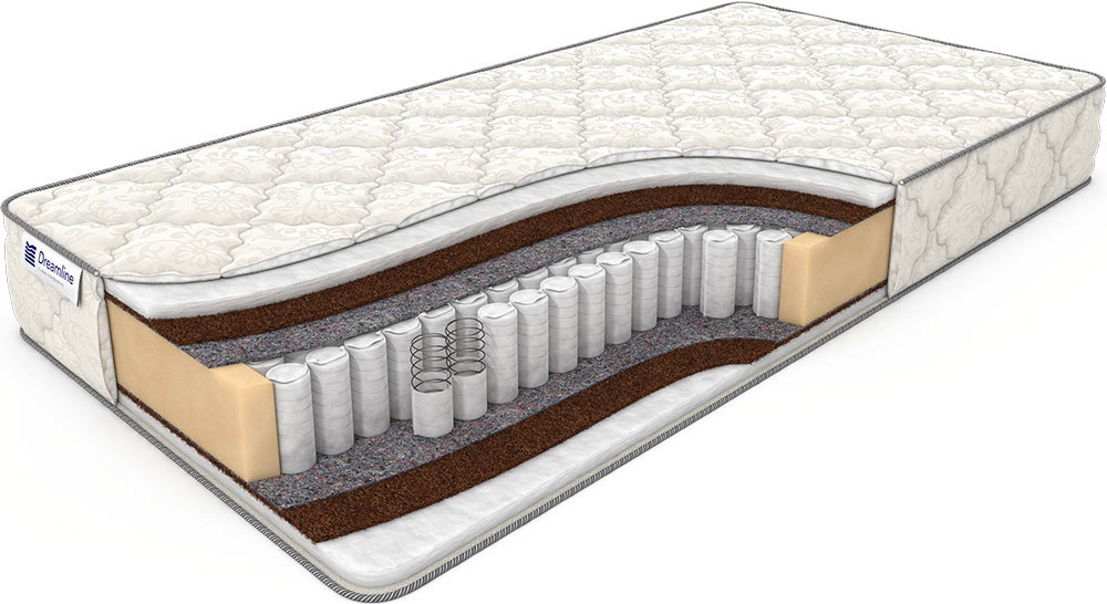 Независимые блоки пружинного механизма TFK призваны гасить сотрясения любой амплитуды, создаваемой телом массой до 120 кг. Два слоя наполнителя: нижний из кокосовых волокон, верхний из холлофайбера – надежно отгорожены от воздействия металлических пружин прочной прослойкой из Льноджутового полотна. Чехол Elite придаёт матрасу современный вид и способствует его длительной эксплуатации. Однако если вы хотите получить от приобретенного товара всё и даже больше, советуем обратить внимание на широкий выбор наматрасников, позволяющих в несколько раз удлинить срок службы матраса, сохраняя его в первозданном виде.