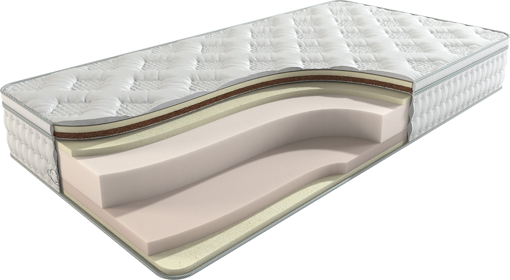 Эта модель также оснащена дополнительным верхним наматрасником из натуральных наполнителей, который добавляет комфорта и улучшает анатомическую поддержку тела. Беспружинная конструкция матраса, на основе пены высокой плотности, обеспечивает оптимальную поддержку позвоночнику и комфортный отдых.