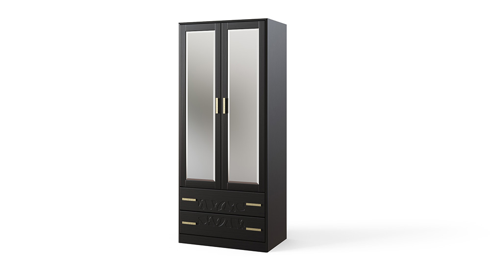Шкаф производится с антресолью в верхней или нижней части шкафа, а также с двумя выкатными ящиками. В стандартном исполнении в большей створке - зеркало с фацетом, выполняет роль филенки в фасаде, по желанию возможна установка дверей из 100 % массива дерева. Корпус шкафа изготавливается только из массива бука или ясеня. Двухстворчатый шкаф – это достаточно вместительный элемент мебели спальни Веро. Авторская резьба на фасадах шкафа делает его произведением мебельного искусства. Распашные дверцы шкафа оснащены петлями с системой дозакрытия в базовой комплектации, а выкатные ящики – телескопическими направляющими. В большей секции шкафа предусмотрена штанга для плечиков. По желанию шкаф может быть оснащен любым количеством полок. Стандартно предусмотрено три комлектовки шкафа: с антресольной секцией вверху или внизу шкафа, а так-же с двумя выкатными ящиками. Требуется сборка.