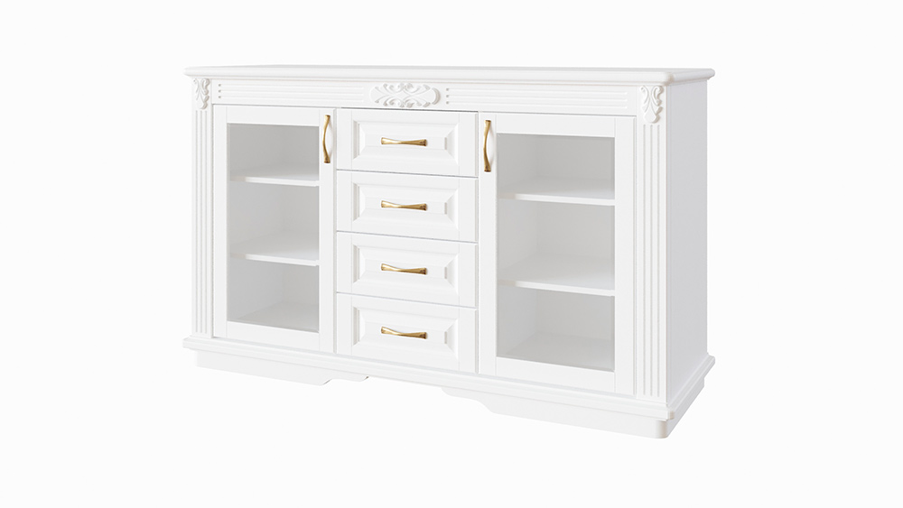 Комод Греденция Dreamline Палермо (4 ящика со стеклом) бук-белый 156х53х94