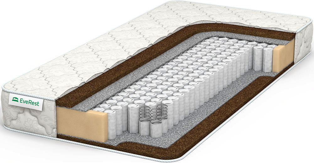 Жесткий пружинный матрас с ортопедическими свойствами и одним видом наполнителя — бикокосом.