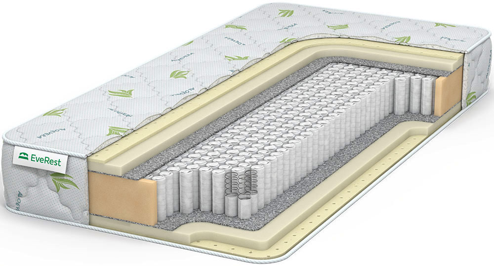 Мягкий пружинный матрас с двумя видами наполнителя — искусственным и природным латексом. Модель с одинаковой мягкостью сторон. Независимые микропружины MultiPocket S1000, лежащие в основе матраса, подстраиваются точечно под контуры тела, тем самым обеспечивая ортопедический эффект. Мягкость спальным поверхность придает комбинация двух настилов с каждой из спальных сторон: искусственного латекса толщиной 3 см и натурального толщиной 1 см. Оба материала упруги, долговечны и гипоаллергенны. От истирания пружинами наполнители защищены войлоком. Трикотажный чехол пропитан составом с антисептиком Aloe Vera.