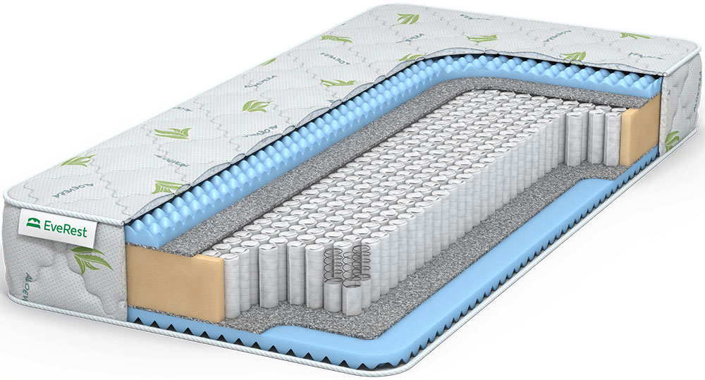 Матрас с блоком независимых пружин и массажными свойствами за счет уникального наполнителя. Относится к моделям среднего уровня жесткости. В качестве наполнителя в нем использован вспененный материал Ergo Foam. В основе модели лежит блок MultiPocket S1000 из микропружин (500 пр./кв.м). Каждая из них упакована в индивидуальные чехлы и точечео реагирует на нагрузку. Среднюю мягкость и легкий массажный эффект спальному месту с двух сторон обеспечивает рельефный пенополиуретан Ergo Foam. Чехол выполнен из прочного хлопкового трикотажа, пропитанный антисептическим составом AloeVera.