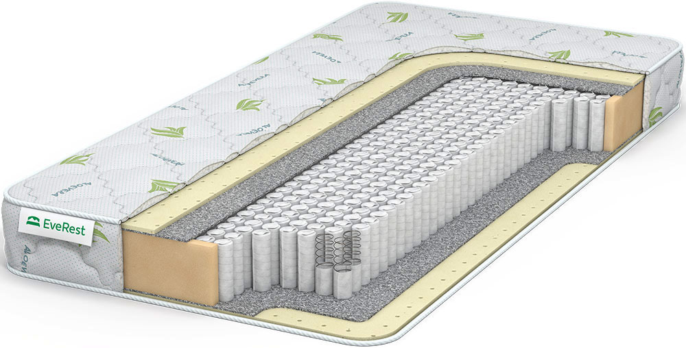 Мягкий пружинный матрас включает натуральный наполнитель — латекс, изолированный от пружин войлоком. Относится к моделям с ортопедическим эффектом. В основе лежит блок MultiPocket из микропружин (500 пр./кв.м). Каждая из них упакована в индивидуальные чехлы и точечно реагирует на нагрузку. За счет большого количества пружин матрас выдерживает большие нагрузки и повторяет изгибы тела. Настилы природного латекса толщиной 1 см с двух спальных сторон придают модели мягкость. Сквозная перфорация обеспечивает свободный воздухообмен. Такой материал быстро восстанавливается после деформации. Трикотажный чехол пропитан экстрактом Aloe Vera с антисептическими свойствами и простеган на синтепоне.