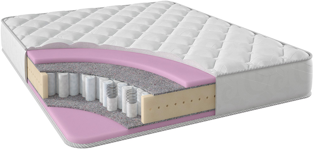 Stories Эфетто ТФК – недорогой матрас с повышенным анатомическим эффектом, приятно обволакивающей силуэт и обеспечивающий точечную поддержку. Основа матраса – блок независимых пружин TFK. Пружины в индивидуальных чехлах защищены сверху и снизу тонкими слоями термовойлока. Дальше расположены монолитные «плиты» пористого и эластичного пенополиуретана, обеспечивающего щадящую поддержку позвоночника. ППУ хорошо пропускает воздух, препятствует скоплению влаги и посторонних запахов. Рекомендуемая нагрузка на одно место – до 120 кг.