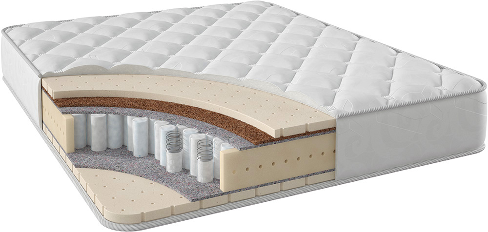 Stories Триумф ТФК – матрас с независимым пружинным блоком и слоями наполнителя из: натурального латекса, койры кокоса, термовойлока. Модель подходит для пар с разным весом, для людей с интенсивными физическими нагрузками и проблемами с позвоночником (необходима консультация специалиста). Кокосовая койра корректирует жесткость, термовойлок помогает регулировать температурный климат, а натуральный латекс способствует анатомическому эффекту. Благодаря продуманному тандему слоев наполнителя и блока TFK, матрас обладает повышенными ортопедическими свойствами.